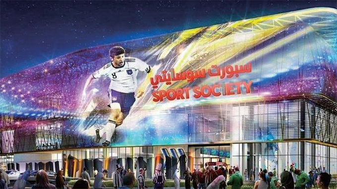 迪拜Sport society是在迪拜王储兼政府执行委员会主席哈姆丹王子于2017年发起一年一度的Dubai fitness Challenge(迪拜健身挑战赛)背景下新规划建设的体育综合体。在业态组合上,突出体育健身主体,并在综合体内融入相关体育品牌服饰和器材以及大健康业态。