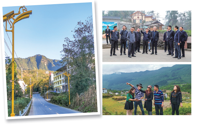 图1-3:1.中国旅游集团捐建马湖4A景区:路灯(雷波县马湖保护中心供图);2.2020年11月15日,中国旅游集团党委书记、董事长万敏(前排右三)、中央纪委扶贫办主任武世平(前排右二)到四川省雷波县考察调研旅游产业帮扶工作,实地考察省级风景名胜区马湖荆竹半岛旅游产业项目,听取凉山州政协副主席、雷波县委书记王荣华(前排右四)的情况介绍,召开工作推进座谈会;3.2019年5月1日,最正规英国365网站_36365快速检测中心_Bet体育365提款验证 集团挂职干部、雷波县人民政府副县长刘文华率最正规英国365网站_36365快速检测中心_Bet体育365提款验证 集团驻地扶贫组同地方党政领导调研马湖(张成 摄)