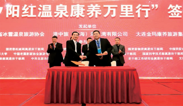 珠海海泉湾与辽宁省冰雪温泉旅游协会、金玛正和健康管理有限公司於日前进行中国「夕阳红温泉康养万里行」签约仪式,未来将就康养市场进行专项开发,海泉湾将为国家36个部委的老干部提供康养服务。