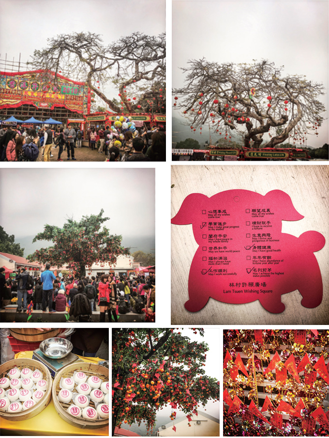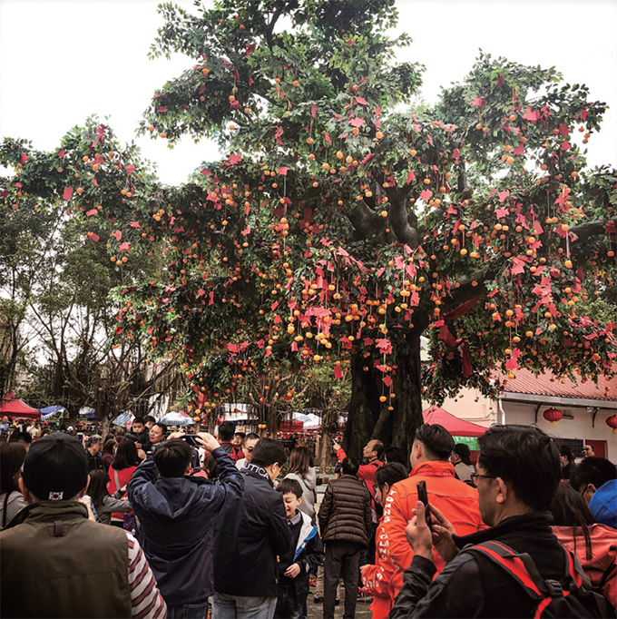以树为神供奉许愿是不少地区的民俗,但在树上挂上愿望倒是香港林村许愿树的特色。许愿者将愿望写在纸上,系上重物抛向大树。如果顺利挂到树上便代表愿望会成真,抛的越高就越灵验。久而久之,原有的许愿树已经不堪重负,虽然用仿真树代替原有大树,仍然不减市民前来许愿的热情,顺势举办的香港许愿节也成了极有香港特色的民俗活动。