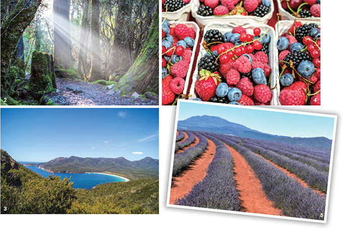 2.圣嘉利湖国家公园的原始森林苍翠怡人;3.群山之中的酒杯湾风姿妩媚;4.浆果农庄新鲜采摘的莓果;5.成片的薰衣草开满小镇