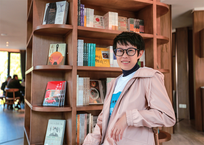 图:在烹饪图书馆,邵雨茜难得地露出了笑容