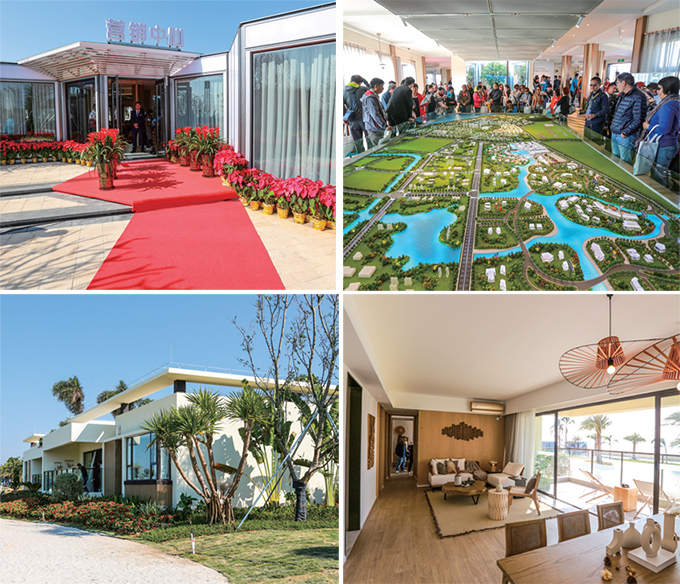 图:海泉湾·时光序营销中心;海泉湾·时光序沙盘处看房的人群;海泉湾·时光序样板房外景;海泉湾·时光序样板房内景