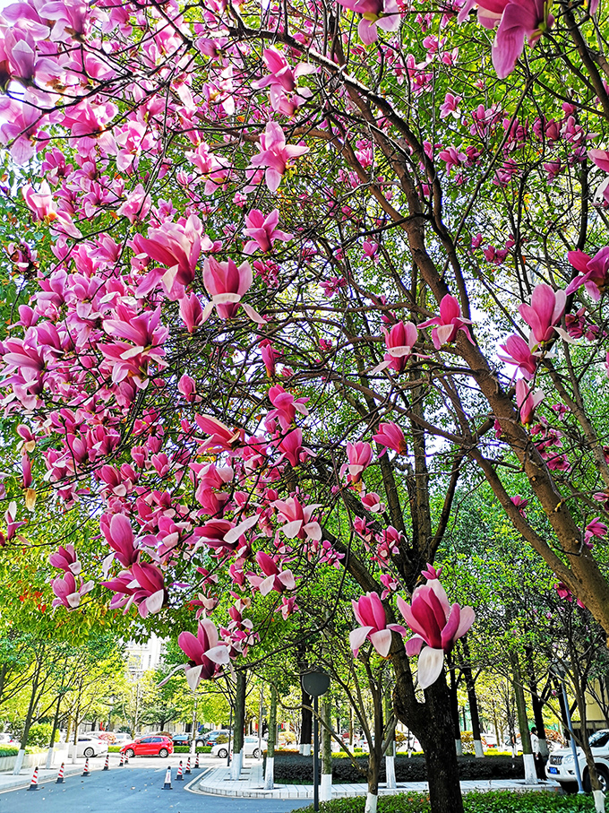 随着天气的转暖,昆明市的紫玉兰竞相绽放,繁花满树,艳丽芬芳。紫玉兰,分布在中国云南、福建、湖北、四川等地。花朵艳丽怡人,芳香淡雅,树形婀娜,枝繁花茂,是优良的庭园、街道绿化植物,但不易移植和养护,非常珍贵。