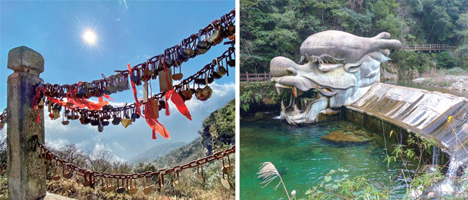 因登山急切体力消耗过大,望着耸入云端的金顶佛殿已经无力再沿着陡峭的钢索攀爬上去。真想变成一只雄鹰穿过云雾飞临金顶天桥,一睹释迦牟尼佛祖和弥勒菩萨未来佛的神采。