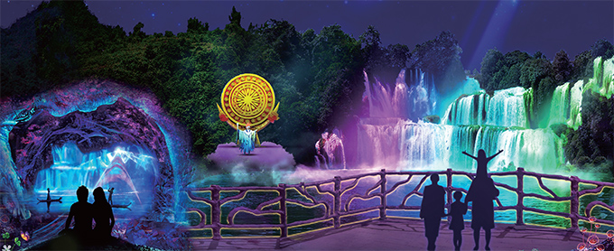 『奇妙·夜德天』项目开发之初於2019年国庆期间,以交互体验和产品相关资源现场调试进行了市场、游客及营运环境的试水,收获了社会各界众多好评与肯定。2020年初,德天跨国瀑布景区并未因疫情影响按下暂停键,而是苦练内功,深入挖掘壮族文化习俗,借助高科技手段,斥资1.2亿开设夜经济产品新业态,其中项目配套设施包含丛林栈道、观瀑剧场、德天寺广场,游览动线中设定多个互动体验区,深度还原壮族先民生活遗迹、文化习俗,展现了绵延千年的壮族文化价值及审美价值。