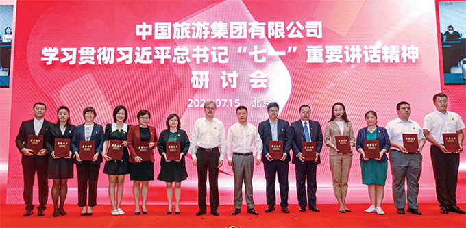 7月15日,中国旅游集团以北京为主会场召开学习贯彻习近平总书记「七一」重要讲话精神研讨会。集团董事会及经理层成员、总经理助理、董事会秘书、证件业务总监,集团总部各部门(含数字化转型办公室)、监察部、研究院、各二级公司(事业群)、直管平台公司、分公司、区域总部、共享中心、服务中心等相关单位负责人,集团受表彰员工代表分别在主会场和19个视频分会场参加会议,参会人员总计190余人。国务院国资委党史学习教育中央企业第五指导组组长王炳华到会指导。