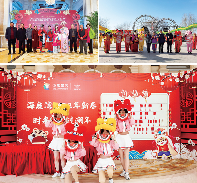 图1-3:青岛海泉湾非遗项目表演/沙坡头虎年大吉/咸阳海泉湾祈福墙