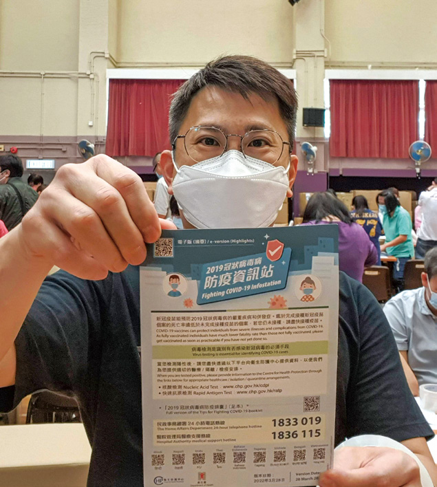 他努力协助弱势社群渡过疫情逆境,面对长者疫苗接种率较低的问题,他细心向长者们解说疫苗接种的相关要求,耐心答疑解惑、为长者消除疑虑,劝导高龄长者积极接种疫苗,助力构建全民疫苗防护屏障。他还积极联络香港各界社会力量,联合港岛东区民政事务署举办「东区疫苗接种日」,为街坊提供便利的疫苗接种服务,大大提高了街坊接种新冠疫苗的积极性。面对区内多位确诊市民居家隔离的情况,他广泛组织义工团队,组成「筲柴抗疫联盟」为有需要的确诊者上门派送口罩、快速检测包和生活日用品等亟需物资, 同时积极协助推行中医网上义诊及中药上门派送服务。